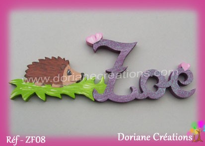 Une collection de prénom en bois qui ne manque pas de piquant avec ce petit hérisson en ballade