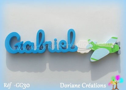 Le prénom est accroché à un petit avion rigolo, soit tout simple, soit en découpe sur une banderole.
