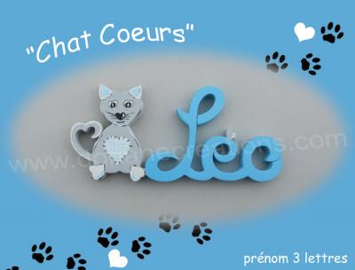 Prénom en bois de 3 LETTTRES décor chat coeurs, prêt à poser avec ses pastilles adhésives. Si option...26,00€ TTC