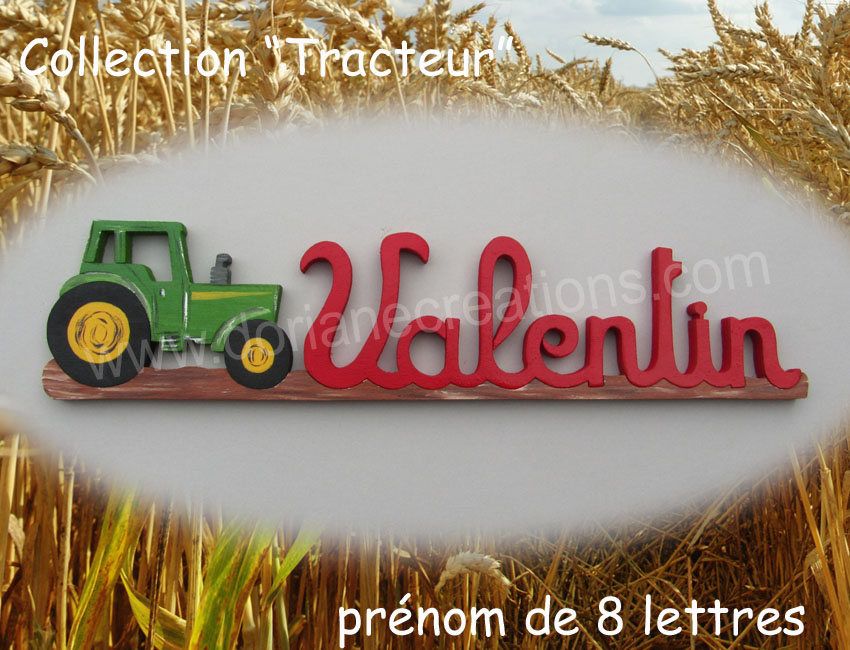 prix pour prénom de 8 lettres, prénom en bois décor tracteur
