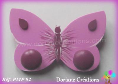 25 Portemanteau parme 3 papillons gris