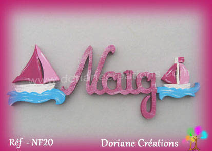 Prénom en bois avec décor bateaux, prêt à poser avec pastilles adhésives. A partir de 32€ le prénom de 3 lettres