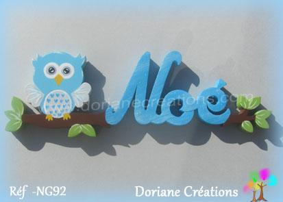 Lettres bois Noé peint en azur nuancé décor chouette.